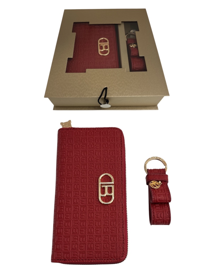 Parure donna LAURA BIAGIOTTI con portachiavi e portafoglio con 10 portatessere e portamonete chiusura con cerniera rubino