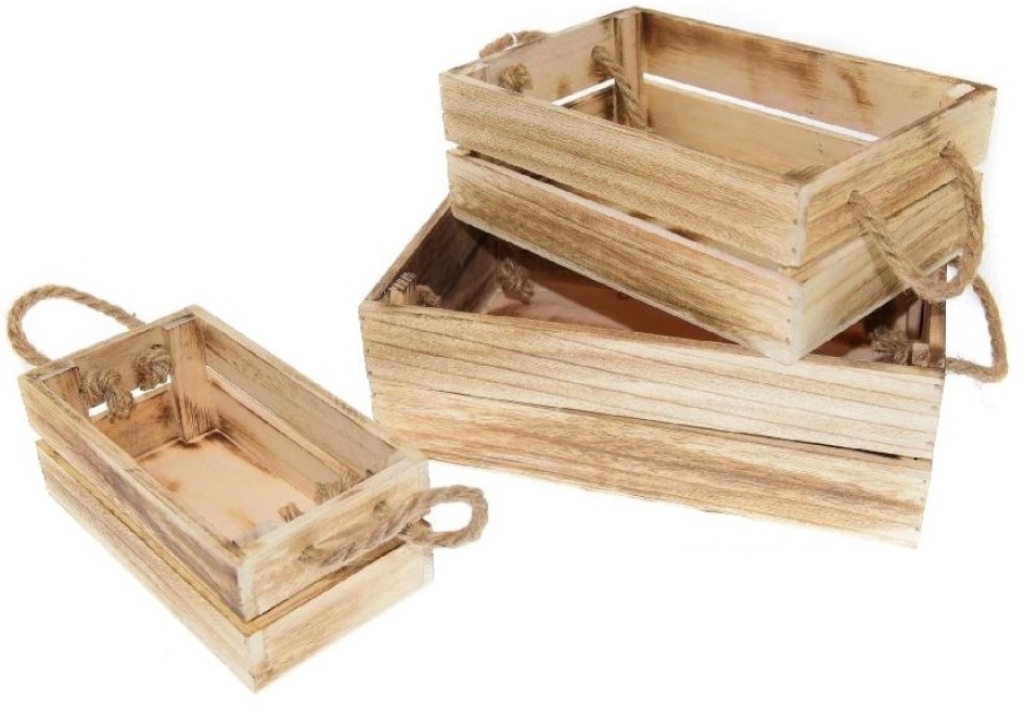 Scopri il fascino naturale delle cassette in legno con manico in corda, perfette per chi ama l'ordine e lo stile rustico. Questo set unisex in colore marrone trasforma lo spazio in un ambiente accogliente e funzionale.