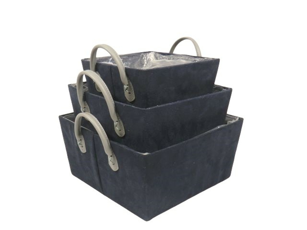 Set di 3 Cesti Quadrati in Tessuto Blu