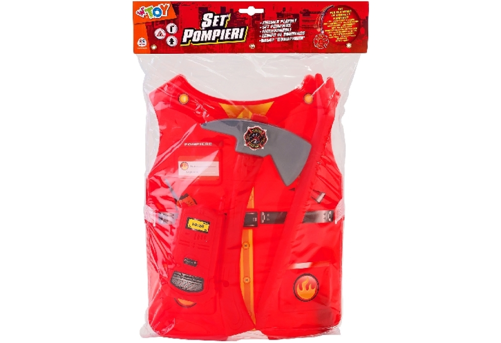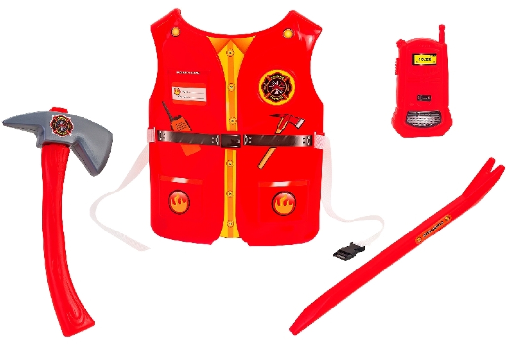 Ecco il set Ideale, con pettorina e tre strumenti indispensabili per essere un valoroso pompiere.